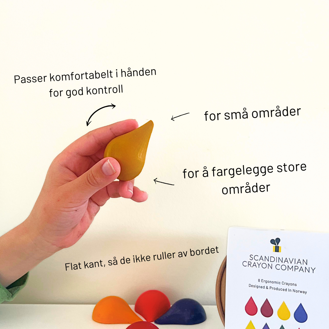 Miljøvennlige materialer: Laget av en bærekraftig blanding av bivoks, rapsvoks og kokosvoks, som sikrer giftfrie og miljøvennlige fargestifter.