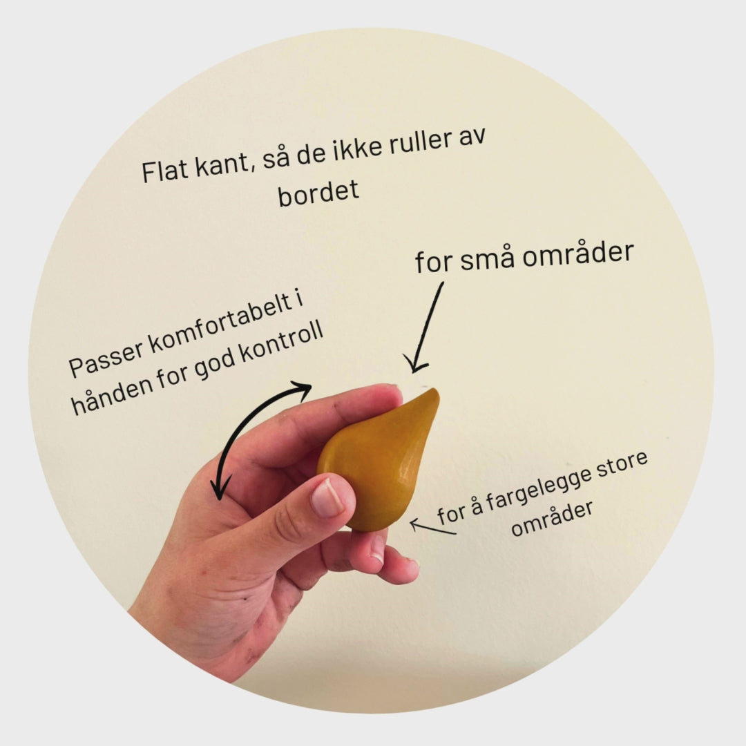Miljøvennlige materialer: Laget av en bærekraftig blanding av bivoks, rapsvoks og kokosvoks, som sikrer giftfrie og miljøvennlige fargestifter.